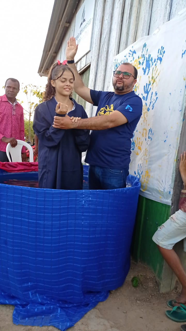 Linda festa batismal no estado de Maranhão onde 20 pessoas se entregaram a Jesus, com evangelismo feito com o apoio do projeto